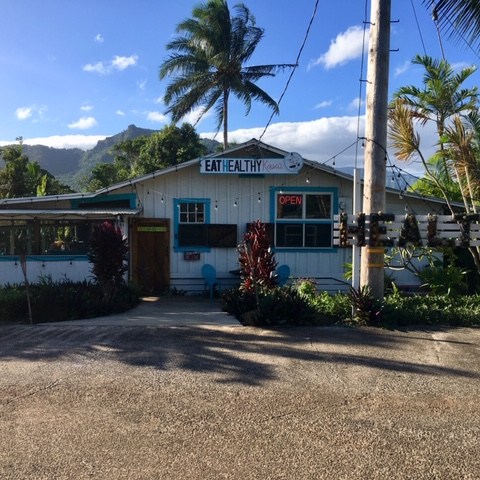 Welcome to Eat Healthy Cafe! Nestled in Wailua, at the southern end of Kapaa, you can find many delectable places to eat, including the aptly named Eat Healthy Cafe. Owner PJ, who moved here from New York, took over ownership of Eat Healthy in December 2017. Running strong for almost a year now, this wonderful restaurant offers vegan comfort food! With a goal to be as welcoming and inviting as possible, the menu offers foods similar to the ones we all grew up with- but instead of scrambled eggs with bacon, you have tofu scramble with tempeh. Less the animals, but no less the flavor! Eat Healthy Cafe is living proof(no pun intended) that vegan food is not scary, but rather quite delicious and beneficial for both you and the planet.