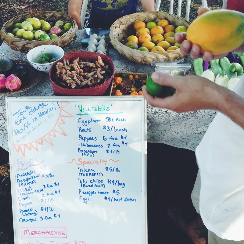 Hale Puna is a 501(c)3. All proceeds from the Farmers Market go towards restoring the historic Gulick Rowell Mission House and to paying these farm school interns (middle and high school students from the west side!).